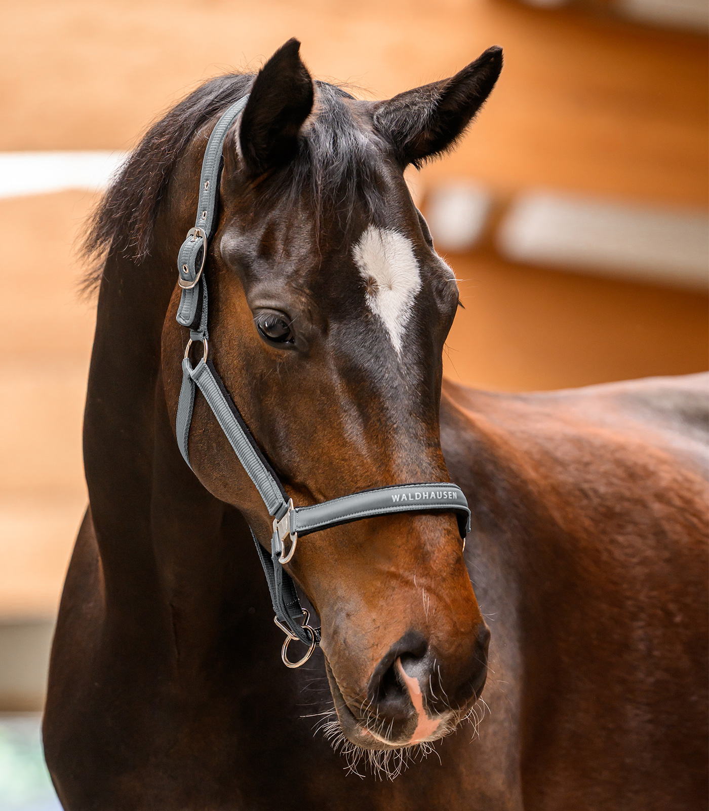 Quality halter with soft padding on neck and nose area as well as on the cheekpieces. Anatomical headpiece for pleasant comfort. Multiple adjustments possible on chin strap and headpiece. With silver/grey metal fittings.