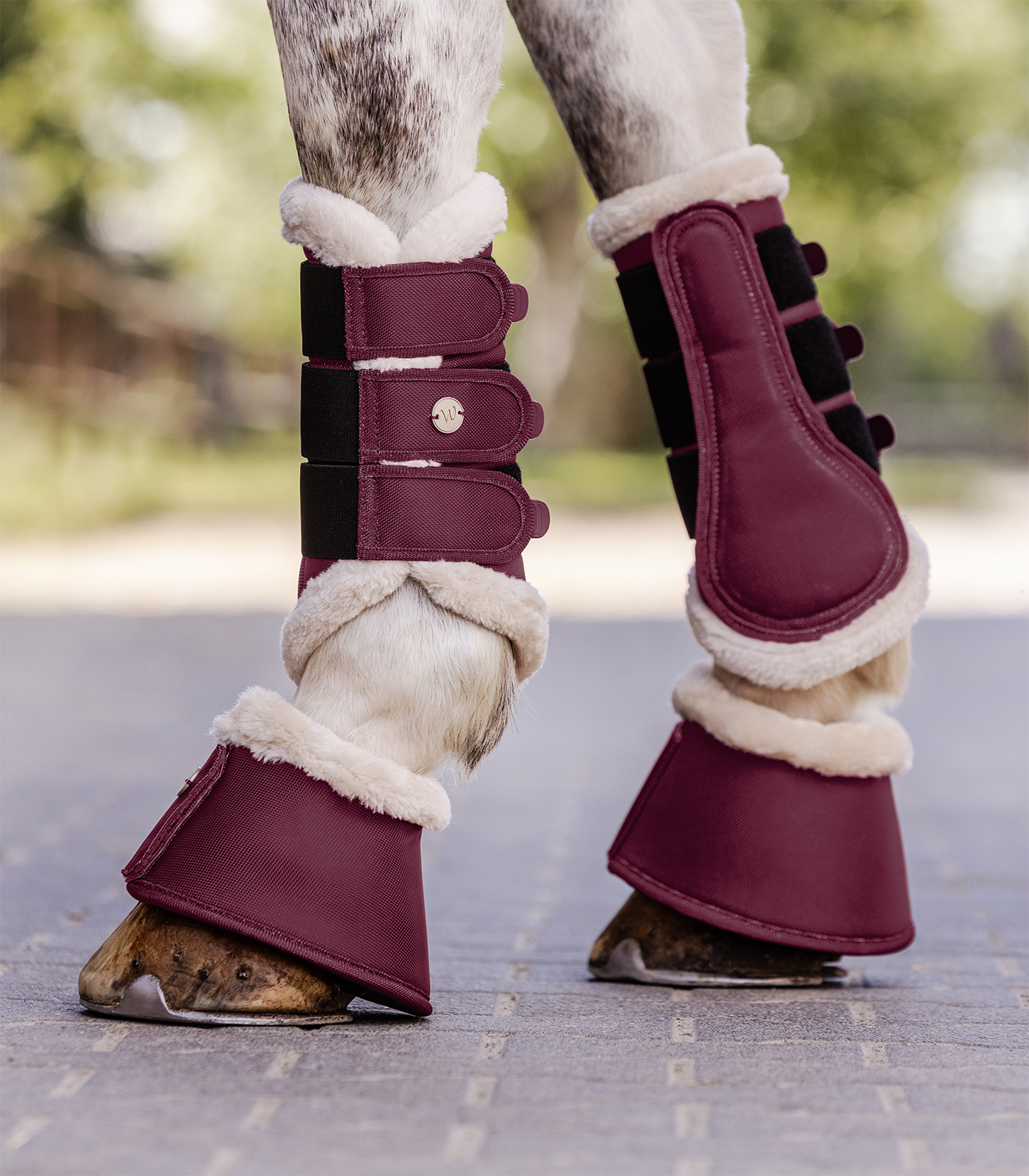 Dressage boot for front and hind legs. The outer material is made from a robust 1680 denier material and offers good impact protection. The soft faux fur edge ensures a comfortable fit. The inner material is made of breathable mesh to prevent heat build-up. In size M with two hook-and-loop fasteners, in size L and XL with three hook-and-loop fasteners each. With small silver-coloured metal logo. Pair.