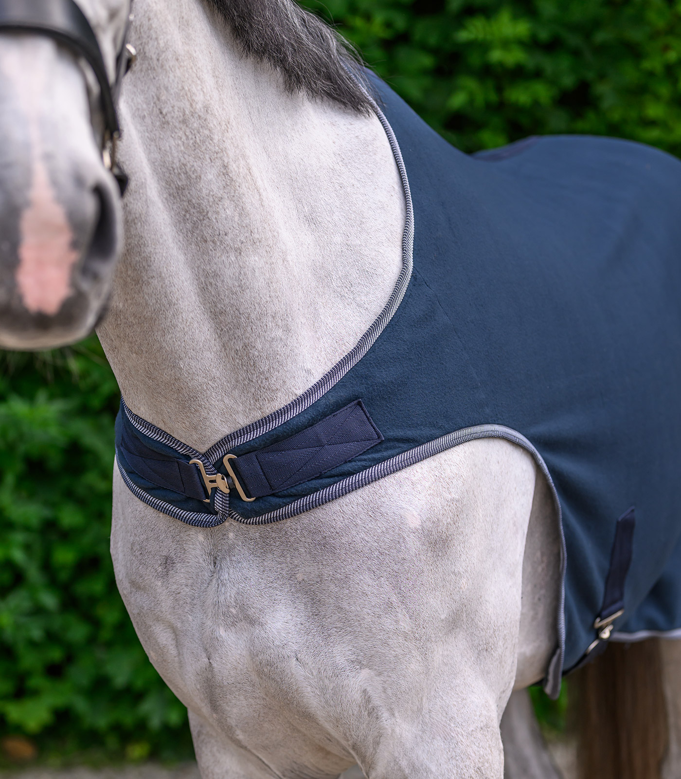 The Economic fleece horse walker rug supports an effective cool-down while allowing freedom of movement in the horse walker. It is equipped with cross straps, a T-front fastening and a tail strap for a secure hold.