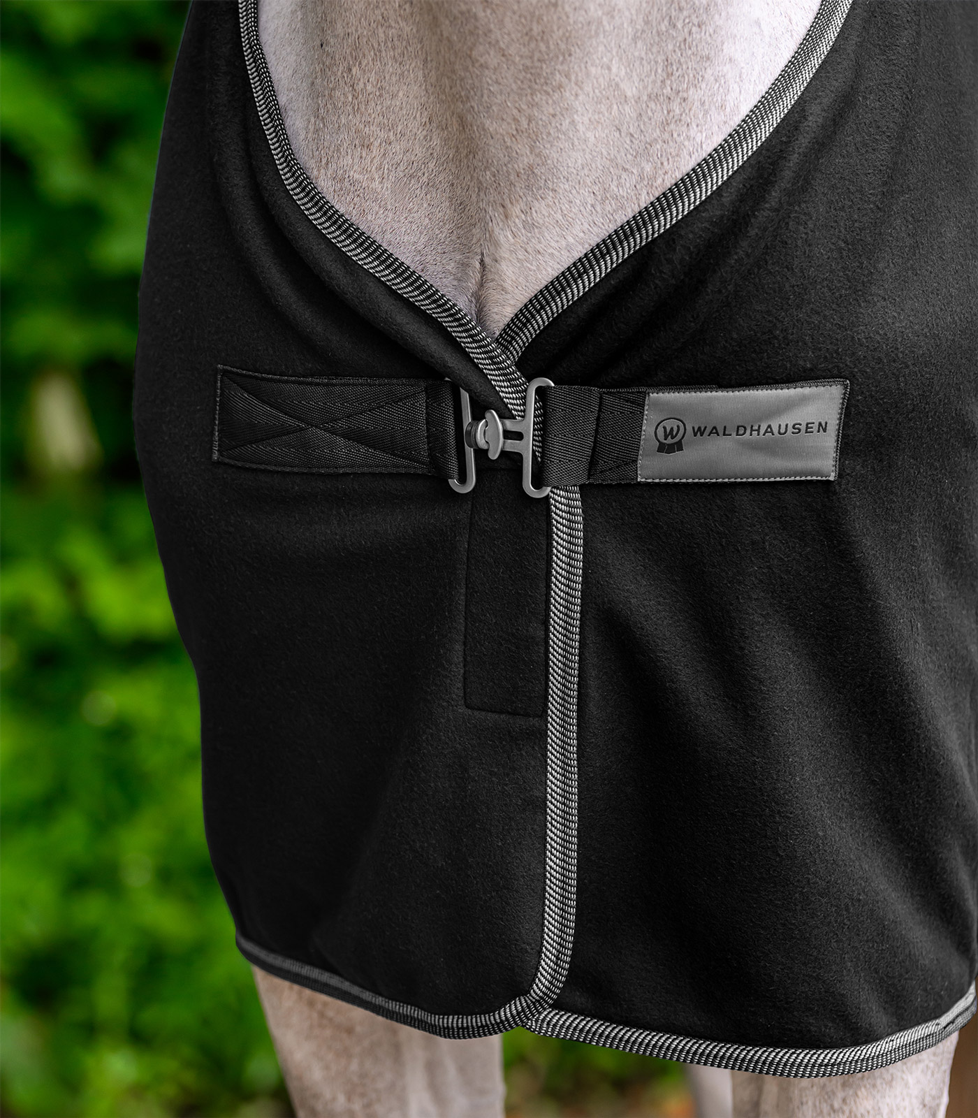 Classic fleece rug for quick cool-down and drying. The rug has a practical T-front fastening, a tail cord and attractive edging. It is available in many sizes and colours, so there is a suitable version for every need.