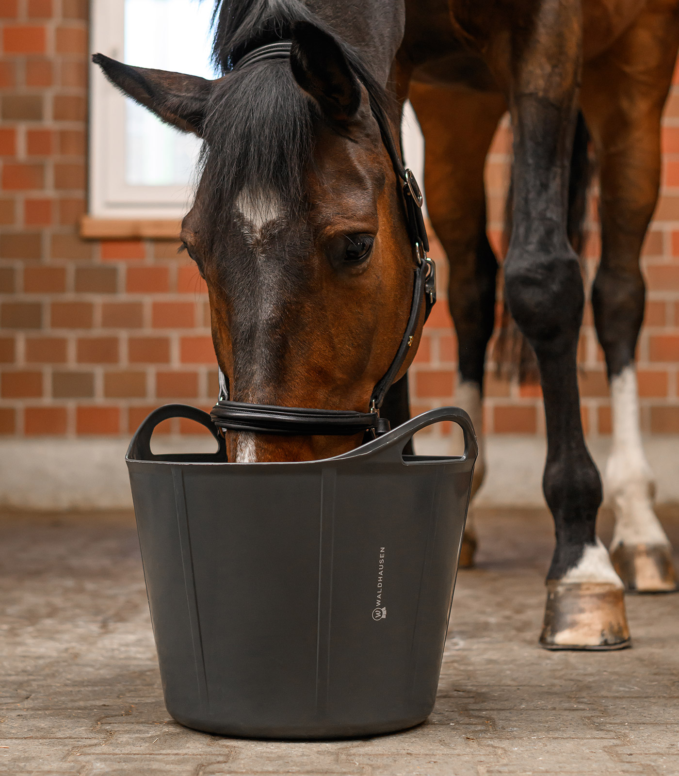 This flexibowl in robust, but very flexible plastic, is universally usable, in the stable but also at home. With two handles it is indispensable for routine jobs and can be used as a feed bowl, for carrying and as a water bucket.