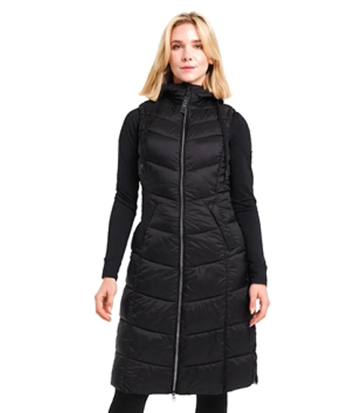 Long quilted gilet with warming filling, ultra-lightweight