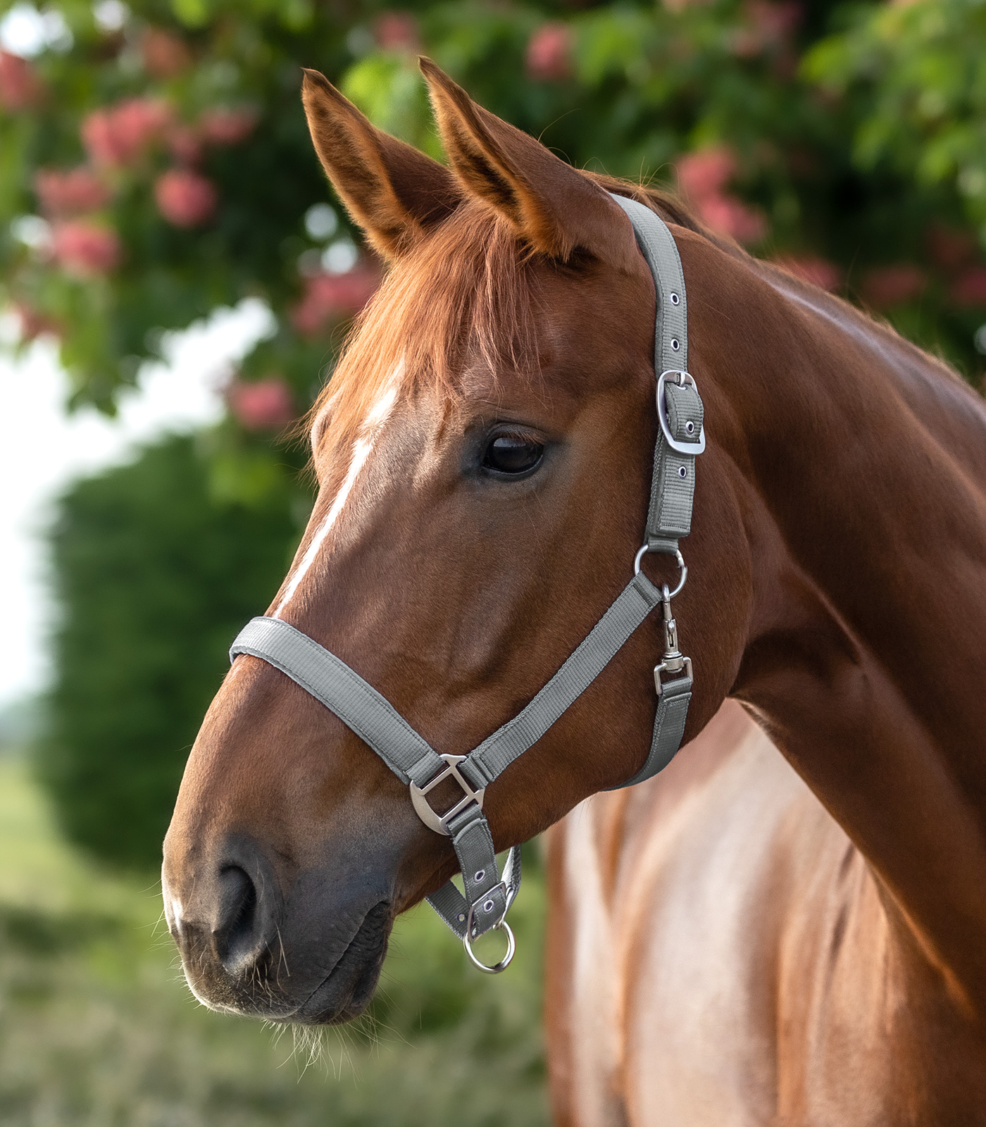 Softly lined halter, multi-adjustable. With matt fittings. Suitable for tethers 5002 and 5006.