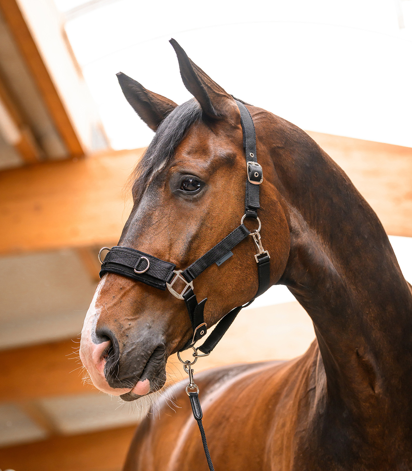 El cavesson es indispensable para el trabajo a la cuerda, el adiestramiento de caballos jóvenes y el trabajo a la mano. Esto protege la sensible boca del caballo. Suavemente acolchada, la muserola debe abrocharse de forma similar a una muserola inglesa. Las anillas de la nariz ofrecen varias opciones de enganche para cabos de estocada o riendas auxiliares.