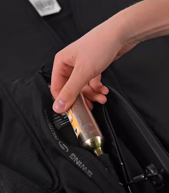 El nuevo chaleco airbag SWING P25 AIR establece nuevos estándares en los deportes ecuestres y ofrece un innovador mecanismo de protección que reacciona en segundos cuando es necesario. Probado de acuerdo con la norma actual NF S72-800:2022, cumple los requisitos más exigentes para los sistemas de airbag en los deportes ecuestres: para una mayor seguridad con la máxima libertad de movimiento. El P25 AIR se ha desarrollado especialmente para su uso en deportes ecuestres y se adapta perfectamente al cuerpo gracias a su diseño ergonómico y a su material ligero y transpirable. Las zonas elásticas integradas y el corte ceñido permiten una libertad de movimiento sin restricciones. Ya sea en terreno, en salto o en entrenamiento. El sistema de airbag protege zonas del cuerpo especialmente vulnerables, como el cuello, el tórax, la espalda, el coxis y la pelvis. El mecanismo de disparo integrado se dispara en milisegundos en cuanto se activa. El chaleco se suelta mecánicamente mediante un cordón de seguridad que se sujeta firmemente a la silla. En el uso diario, el P25 AIR destaca por su bajo peso y discreta apariencia. El chaleco airbag SWING P25 AIR es fácil de reactivar: tras el despliegue, el cartucho de CO2 puede sustituirse automáticamente para que el chaleco esté rápidamente listo para volver a utilizarse. Con su práctica cremallera frontal y sus líneas limpias, se integra perfectamente en la gama de productos SWING de alta calidad. Para los jinetes que no hacen concesiones: el P25 AIR combina la tecnología de protección más avanzada con una elegancia deportiva. Se recomienda el uso del chaleco airbag para personas con un peso corporal de al menos 35 kg.