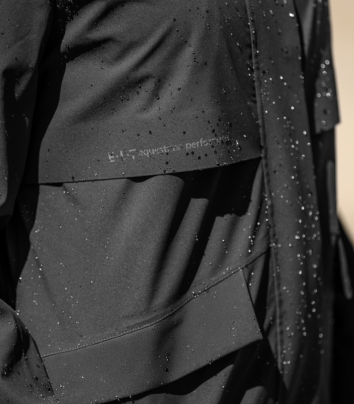 - Texto E·L·T Equestrian Performance reflectantes en el canesú derecho de la cintura