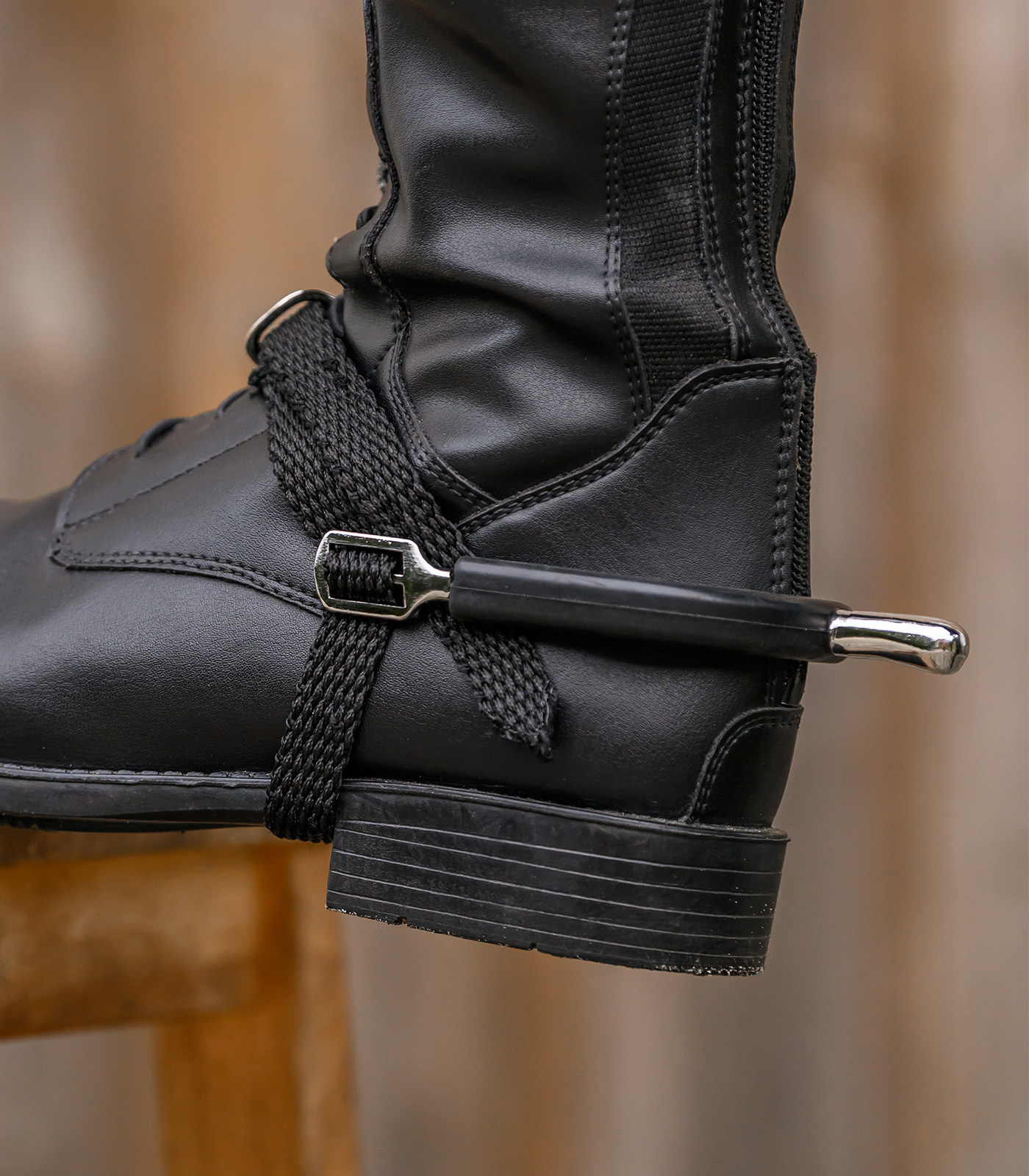 Espuelas con protección fija para espuelas y correas de nailon, acero inoxidable. La protección de espuelas fija hace que no se deslicen y protege las botas de equitación, set de un par.