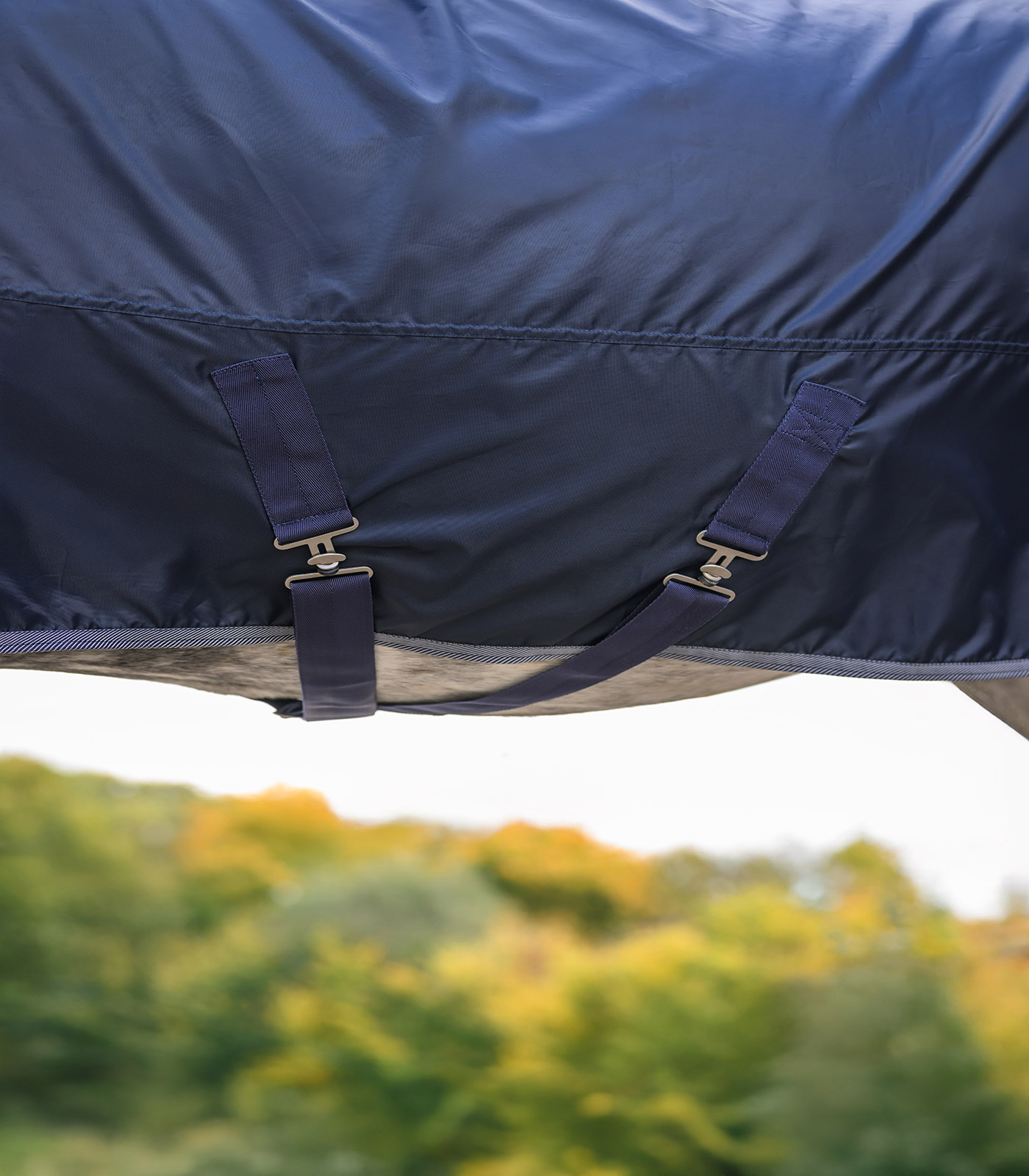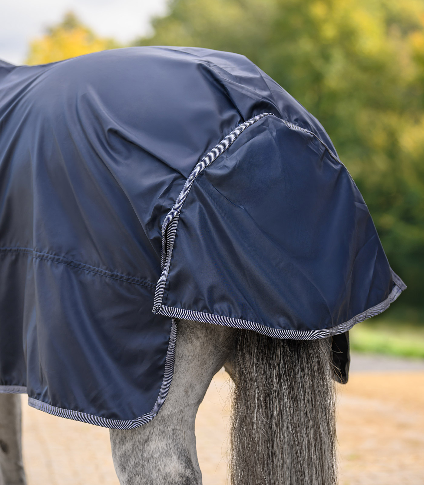 La manta para lluvia ECONOMIC está fabricada en poliéster impermeable y ligero de 420 deniers y ofrece una protección fiable en condiciones húmedas. El resistente material exterior garantiza su durabilidad, mientras que la solapa integrada en la cola ofrece una protección adicional contra la lluvia y el viento. La hebilla frontal con práctico cierre en T facilita su uso.
