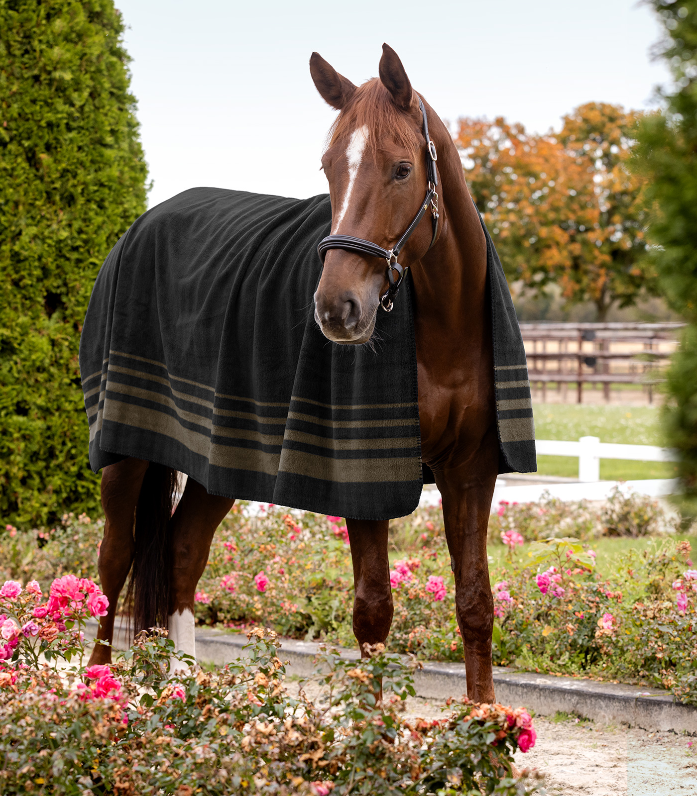 La manta de tejido polar Sölden atrae todas las miradas. El material grueso (330 g/m²) proporciona un calor óptimo para el caballo y el jinete en los días fríos. Gracias a su versatilidad, la manta polar Sölden es un accesorio todoterreno. Las rayas en el borde inferior de la manta aportan estilo.