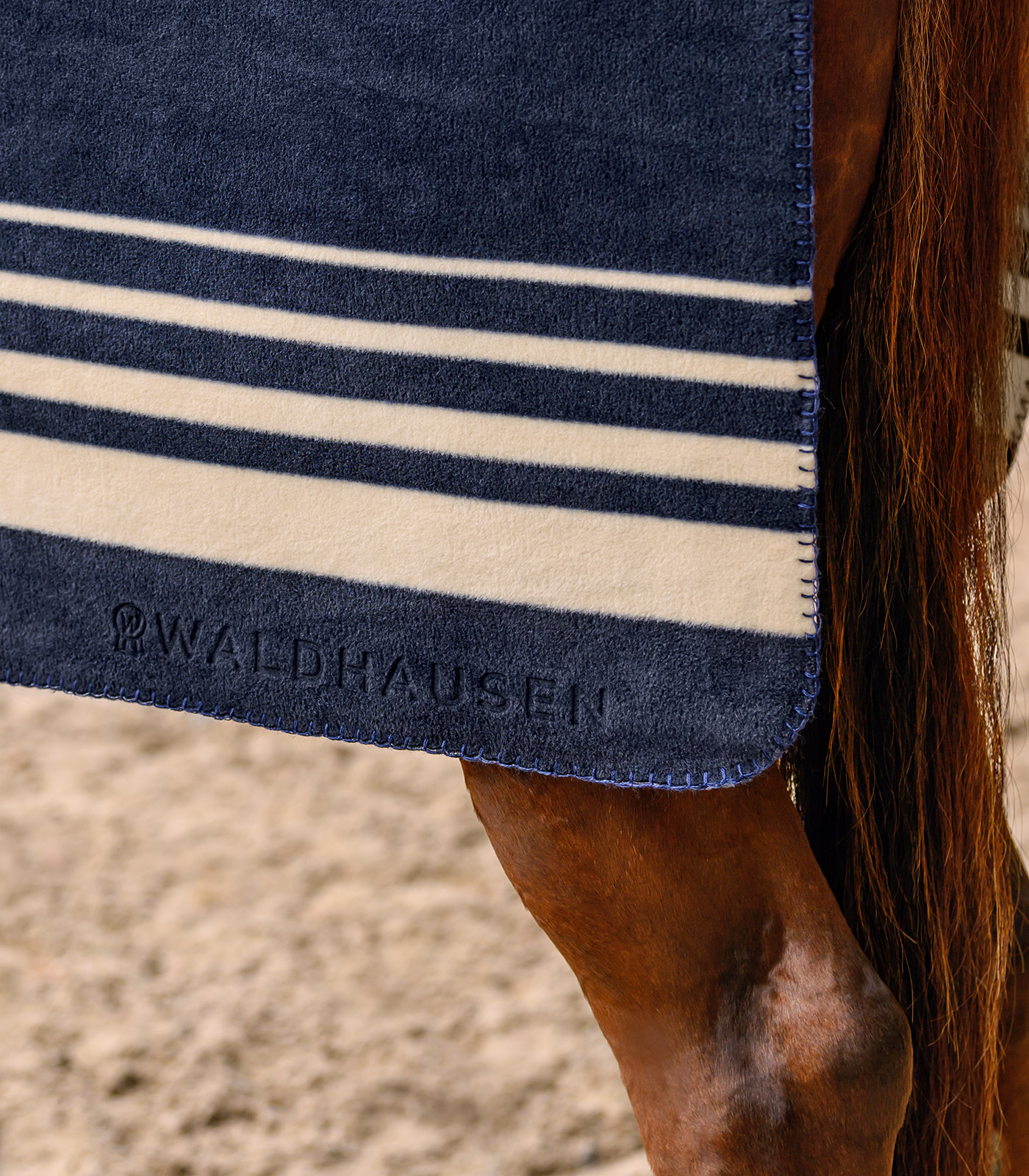 La manta de tejido polar Sölden atrae todas las miradas. El material grueso (330 g/m²) proporciona un calor óptimo para el caballo y el jinete en los días fríos. Gracias a su versatilidad, la manta polar Sölden es un accesorio todoterreno. Las rayas en el borde inferior de la manta aportan estilo.