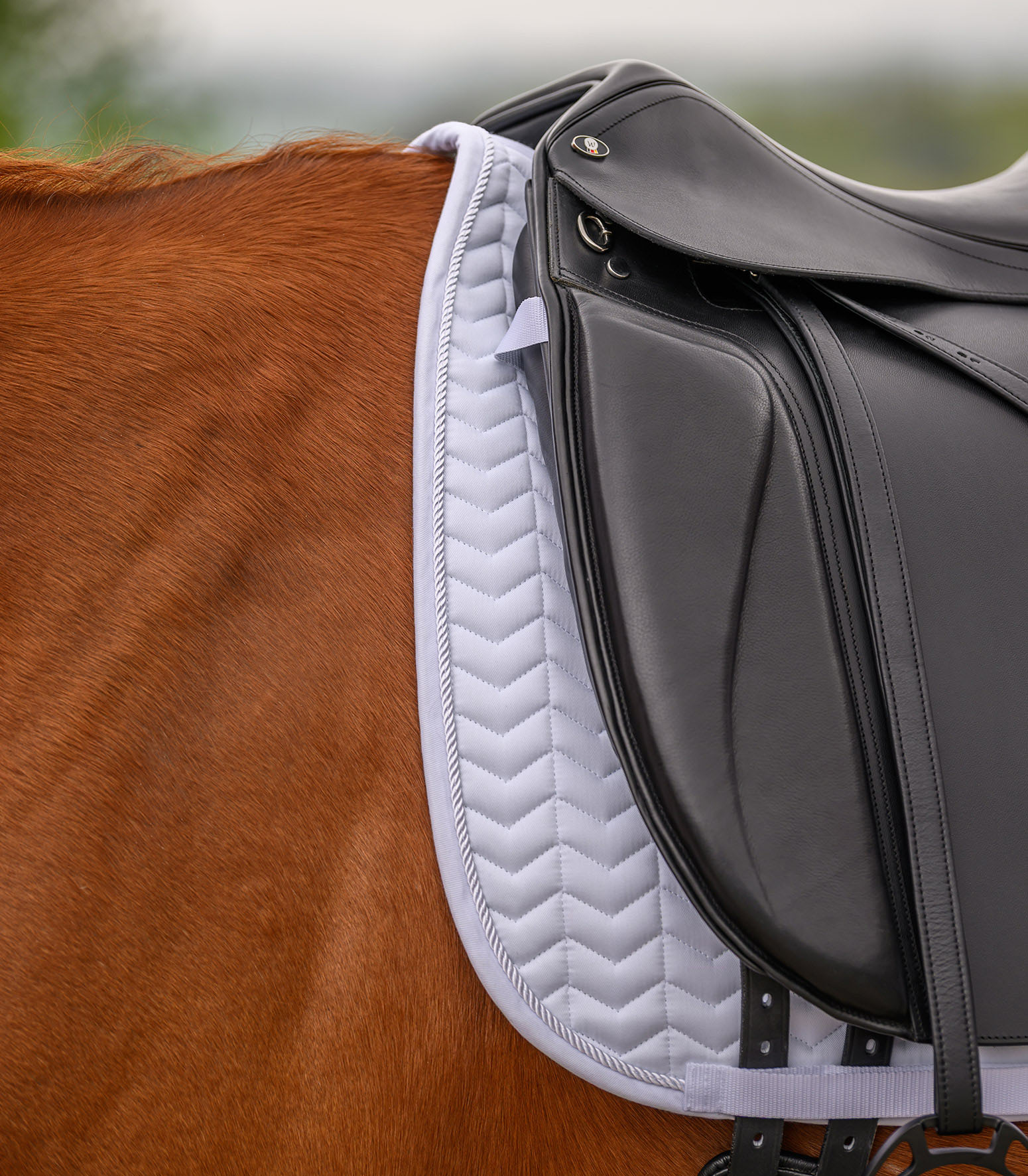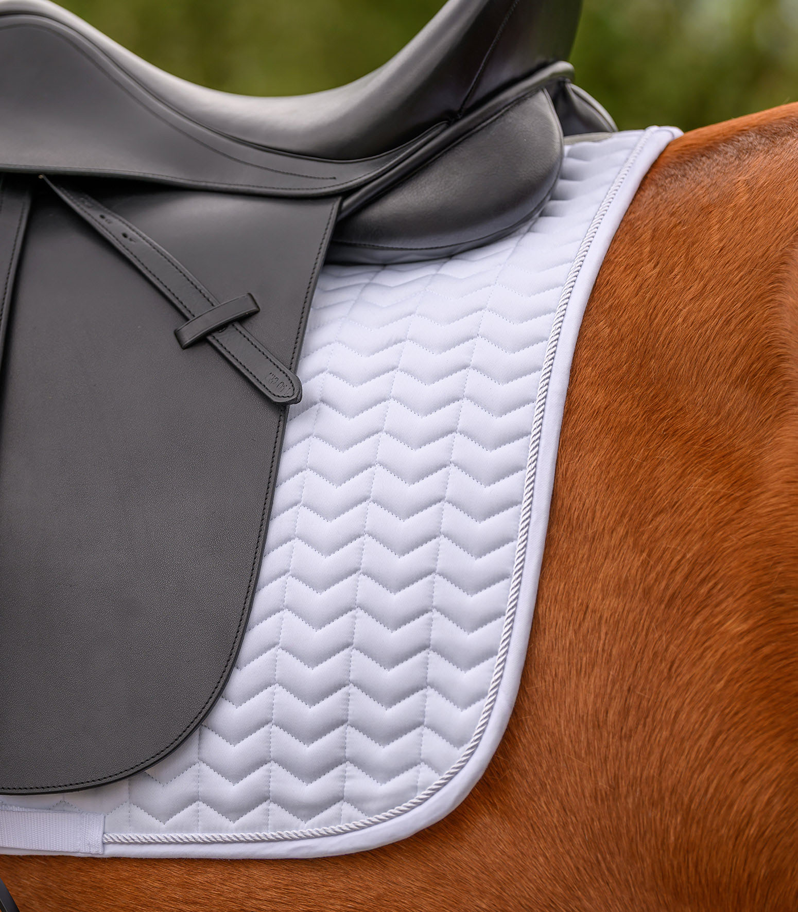 Mantilla clásica con pespunteado elegante e inusual. Cierre de gancho y bucle en las trabillas. El forro absorbe perfectamente el sudor, el acolchado de guata de 280 g/m² y la gomaespuma de 10 mm garantizan una excelente distribución de la presión. Se puede elegir entre un lazo de nudo simple o dividido.