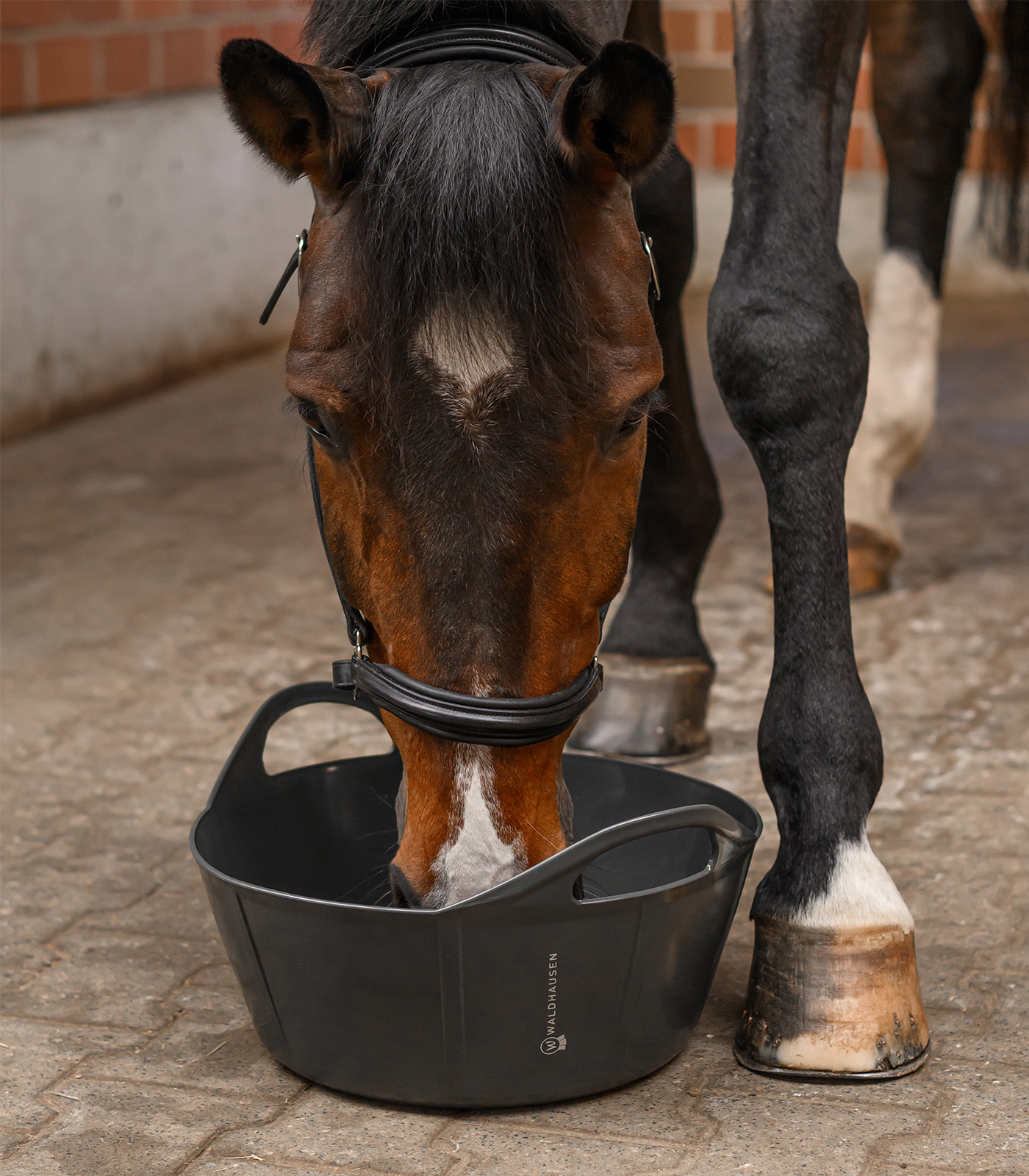 El recipiente flexible de plástico robusto pero muy flexible es ideal para su uso no sólo en la cuadra, sino también en el hogar. Con sus dos asas es un instrumento imprescindible para el trabajo cotidiano y se puede utilizar como cubo de pienso, transporte o agua.