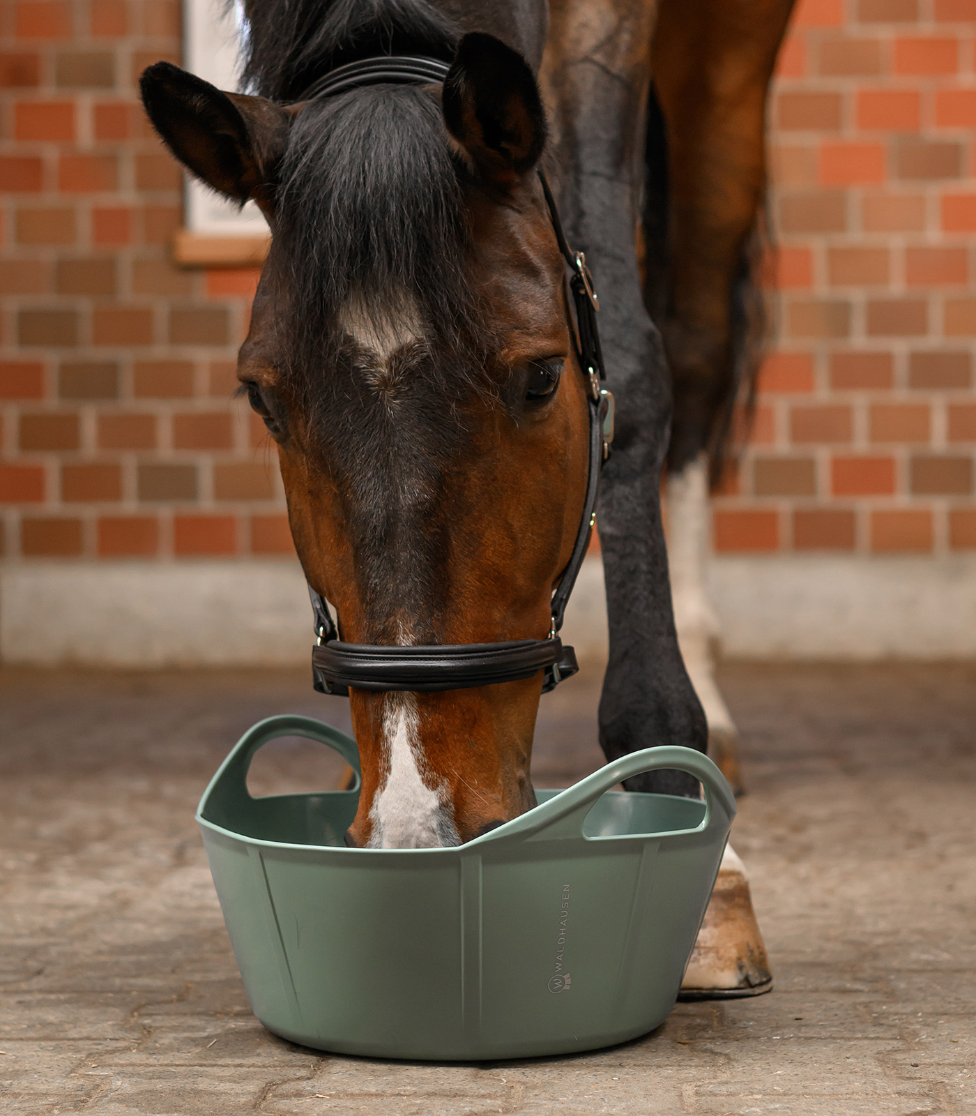 El recipiente flexible de plástico robusto pero muy flexible es ideal para su uso no sólo en la cuadra, sino también en el hogar. Con sus dos asas es un instrumento imprescindible para el trabajo cotidiano y se puede utilizar como cubo de pienso, transporte o agua.