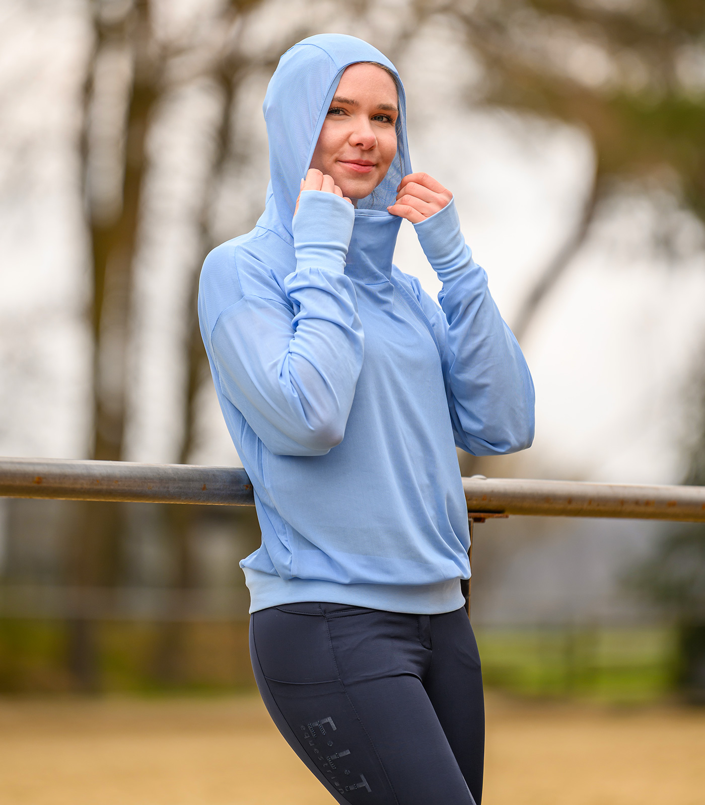 Sudadera ultraligera con capucha fabricada en malla Powermesh, ideal para protegerse de las moscas en climas cálidos