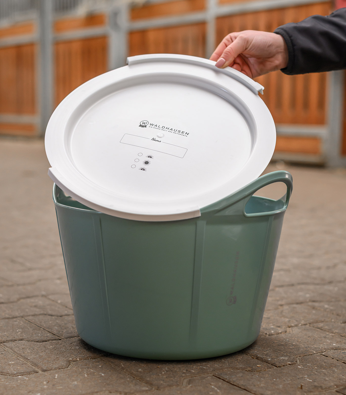 Gracias a su robusta tapa, los recipientes flexibles de Waldhausen de 10 y 17 litros pueden apilarse y el contenido queda protegido.