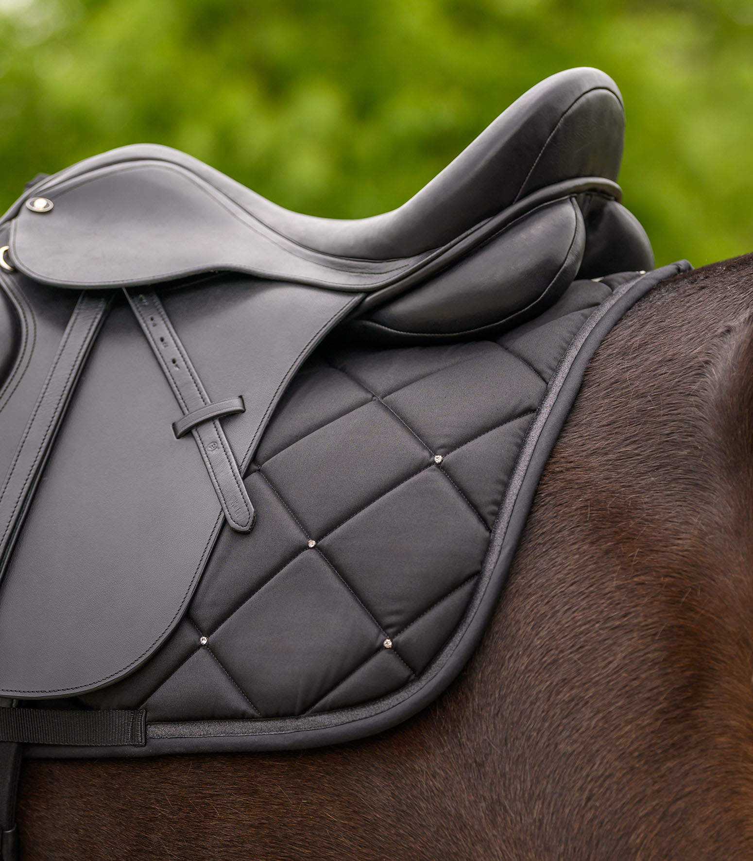 Chabraque d’excellente qualité ornée d’un ruban scintillant. De par l’ajout de strass scintillants, personne ne peut ignorer cette élégante chabraque. La face inférieure fonctionnelle assure une respiration optimale. Les 8 mm de mousse associés aux 250 g/m² d’ouate assurent une répartition optimale de la pression.