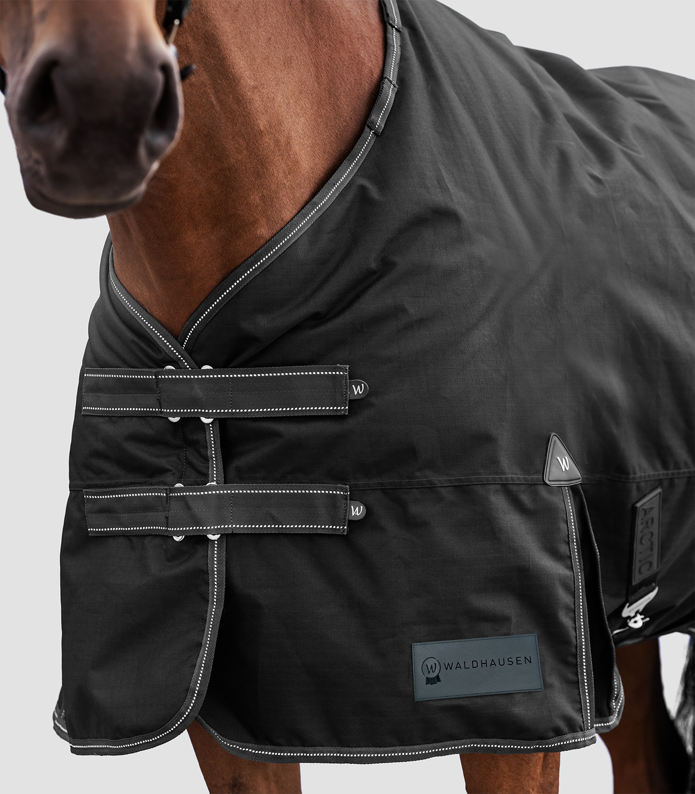 Avec la couverture d’extérieur Arctic de Waldhausen, vous avez l’assurance que votre cheval bénéficie d’une protection optimale en cas d’intempéries. La doublure intérieure antibactérienne assure un confort maximal. Les doubles fermetures poitrail en T assurent un bon ajustement et empêchent la couverture de glisser. Le liseré à détails réfléchissants augmente la visibilité en cas de faible luminosité. Les plis de marche généreux offrent une liberté de mouvement illimitée et les sangles croisées assurent une stabilité supplémentaire. La matière extérieure en 600 deniers offre une protection résistante contre le vent et les intempéries.