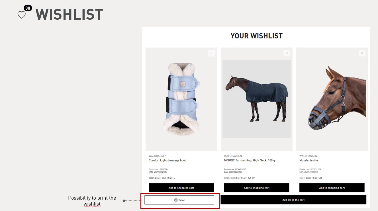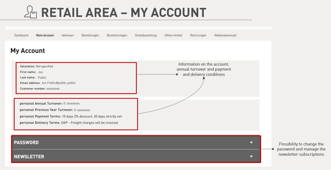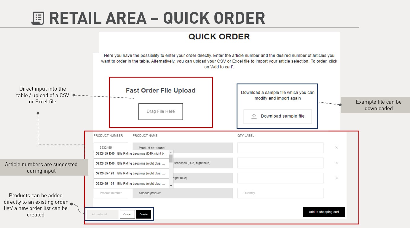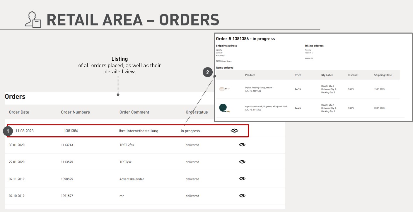 Shop functions for end consumer