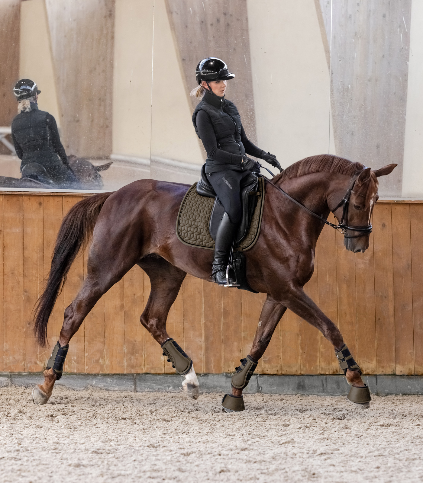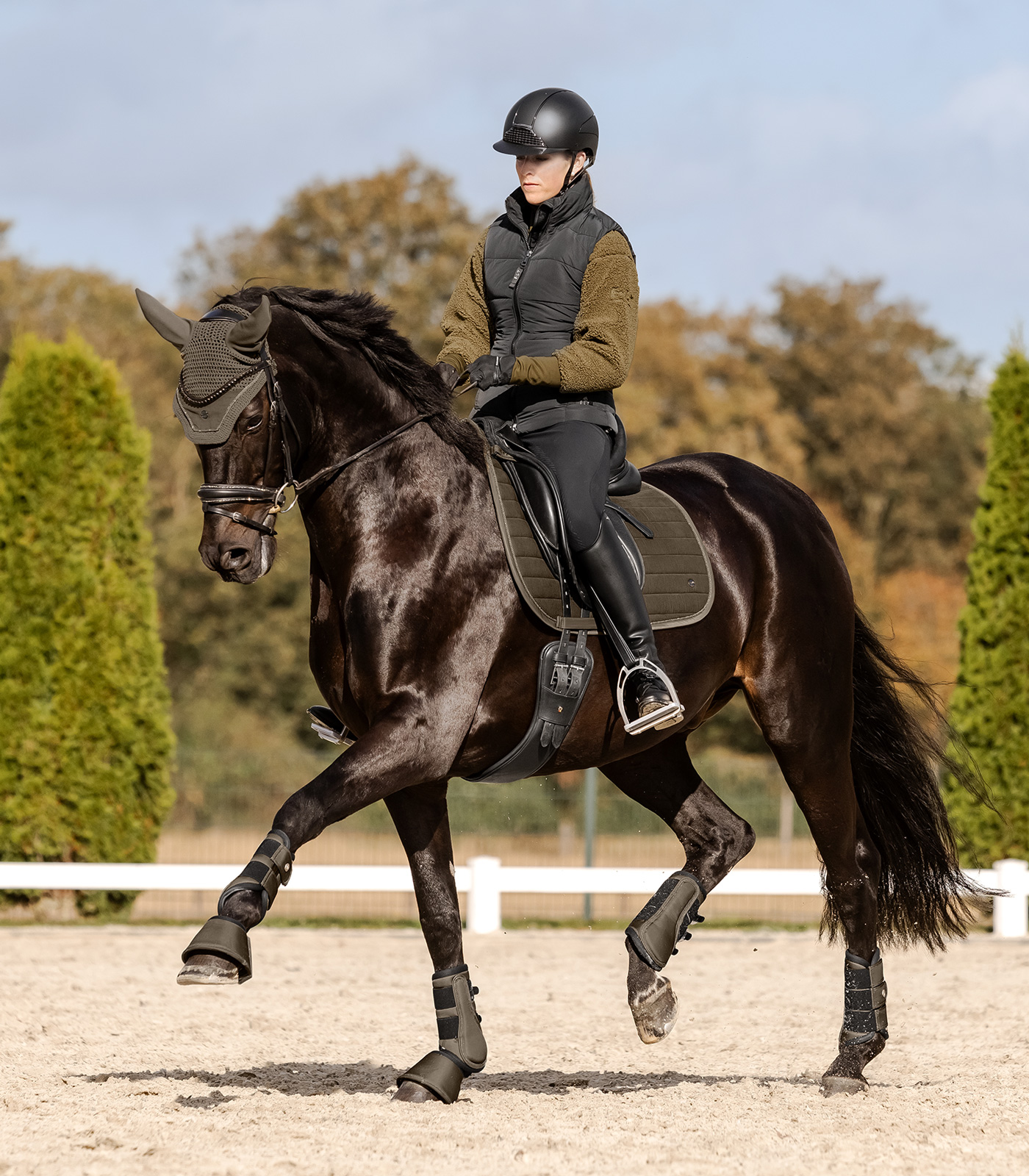 Ces guêtres de dressage de qualité ont été spécialement conçues pour les jambes antérieures et postérieures et combinent la meilleure protection possible avec un design élégant. L"intérieur est composé de mesh respirant, ce qui empêche efficacement l"accumulation de chaleur et assure une excellente ventilation. Le matériau extérieur robuste de 1 680 deniers assure en outre une protection hors pair contre les chocs, tandis que la zone renforcée les coups et coups de pied offre une protection maximale. Le bord doux rend le modèle agréable à porter. Le large système de fixation par Velcro avec empiècement élastique permet un ajustement sûr et un maintien ferme. En taille M, les guêtres disposent de deux fermetures Velcro, tandis que les tailles L et XL sont équipées de trois fermetures Velcro chacune. Un élégant logo métallique anthracite vient compléter le design. La paire.