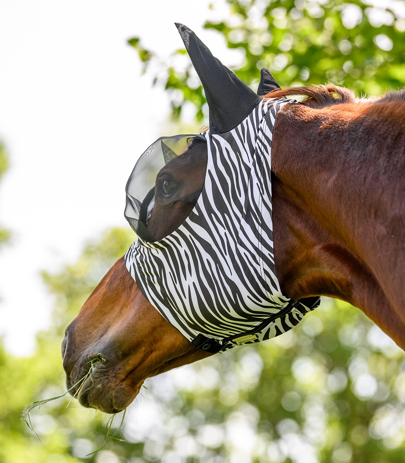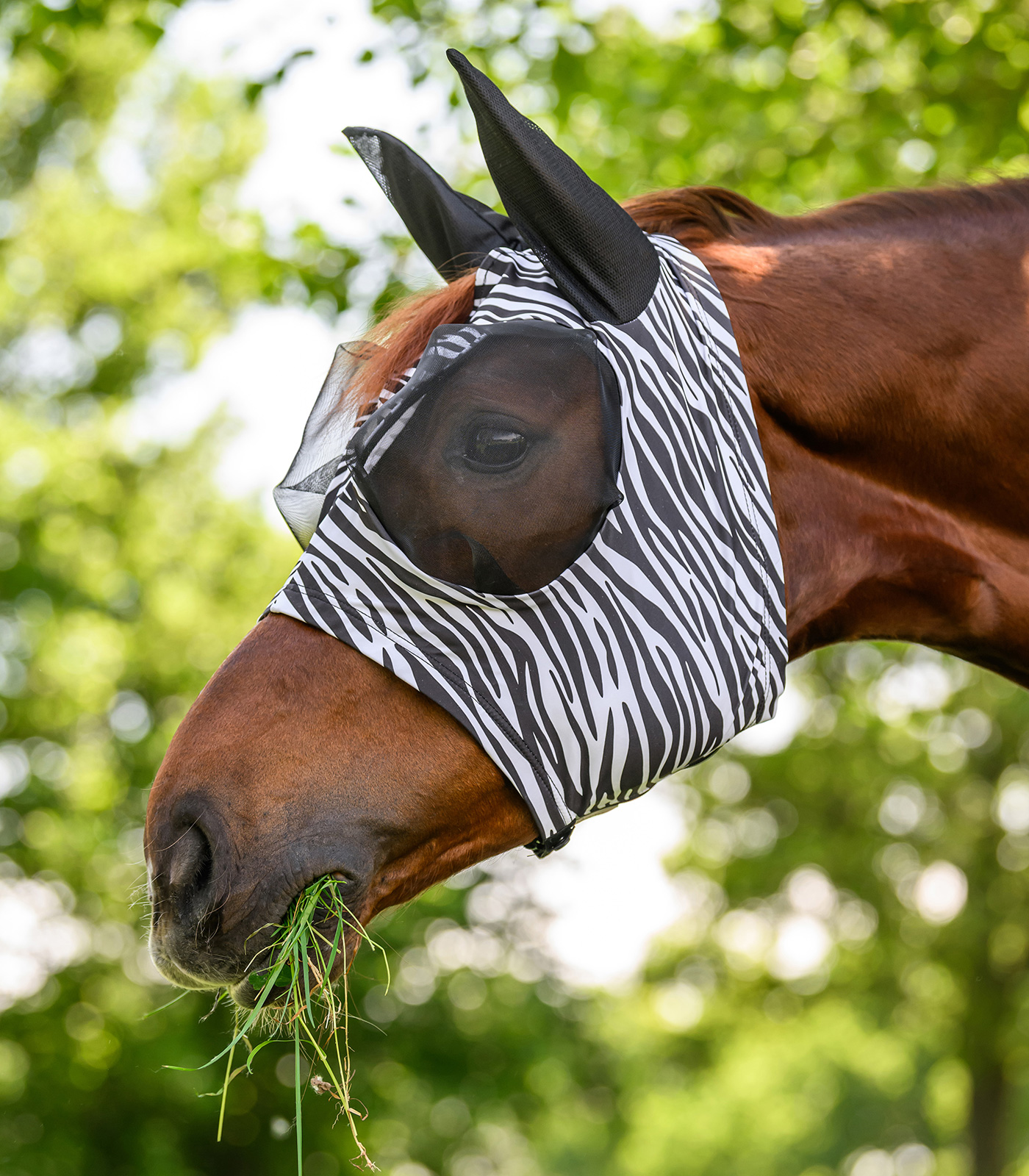 Protection optimale contre les mouches. La longue fermeture à glissière permet de l"enfiler et de l"enlever sans effort. Grâce au matériau élastique, le masque anti-mouches s"adapte parfaitement et ne laisse aucune chance aux insectes. Il offre en outre une grande liberté pour les yeux. Le noir et blanc a un effet répulsif sur les insectes et protège ainsi plus efficacement que les masques traditionnels.