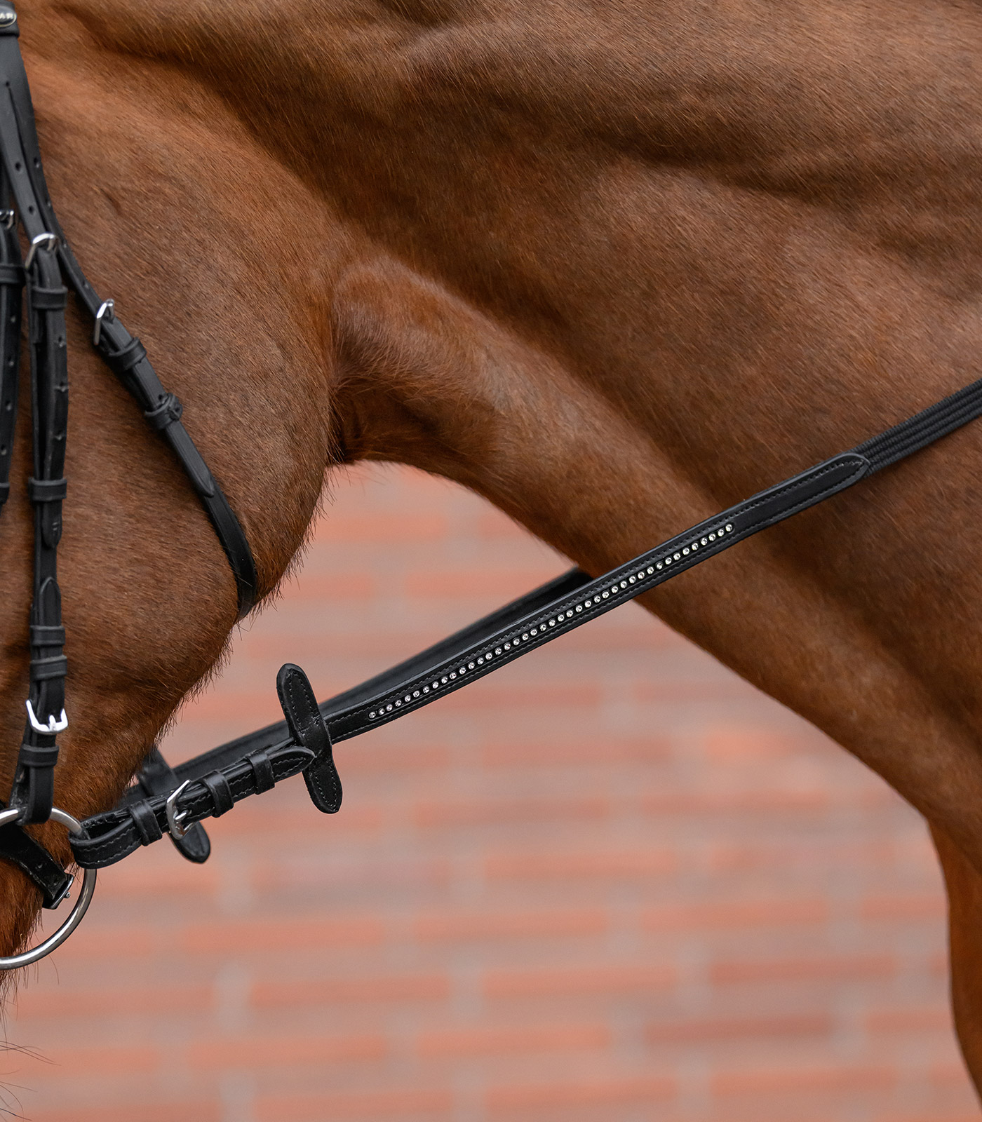 Rênes avec chaîne décorative en strass. Avec coulisse de martingale.