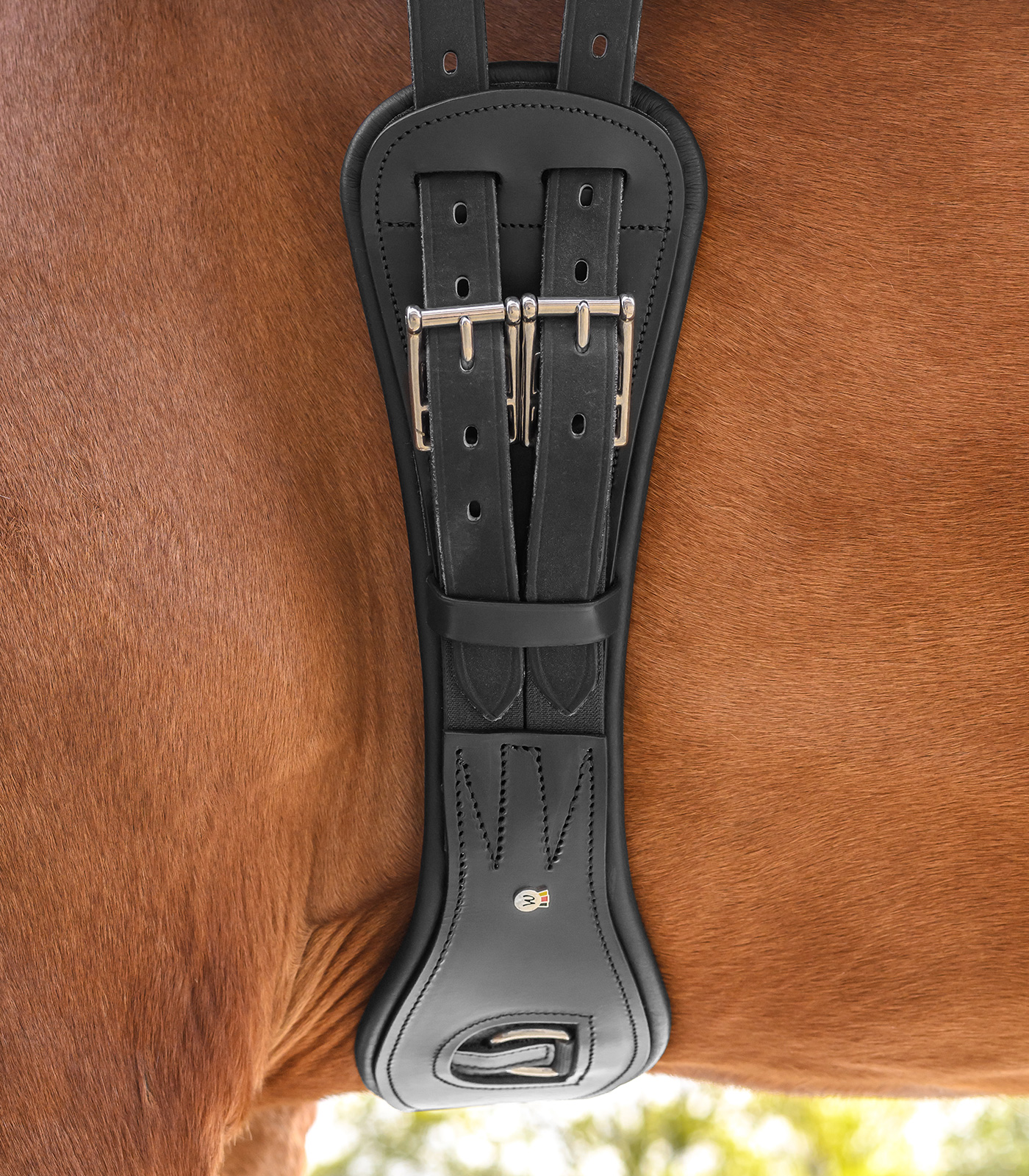Grâce à son rembourrage moelleux et à sa coupe anatomique, elle protège des frottements et s’adapte au mieux. Le cuir de grande qualité est travaillé minutieusement. Avec boucles à rouleau en inox et inserts élastiques aux deux extrémités, un anneau pour enrênements au centre. Les orifices dans le cuir pour les contre-sanglons empêchent la sangle de glisser sous les sanglons.