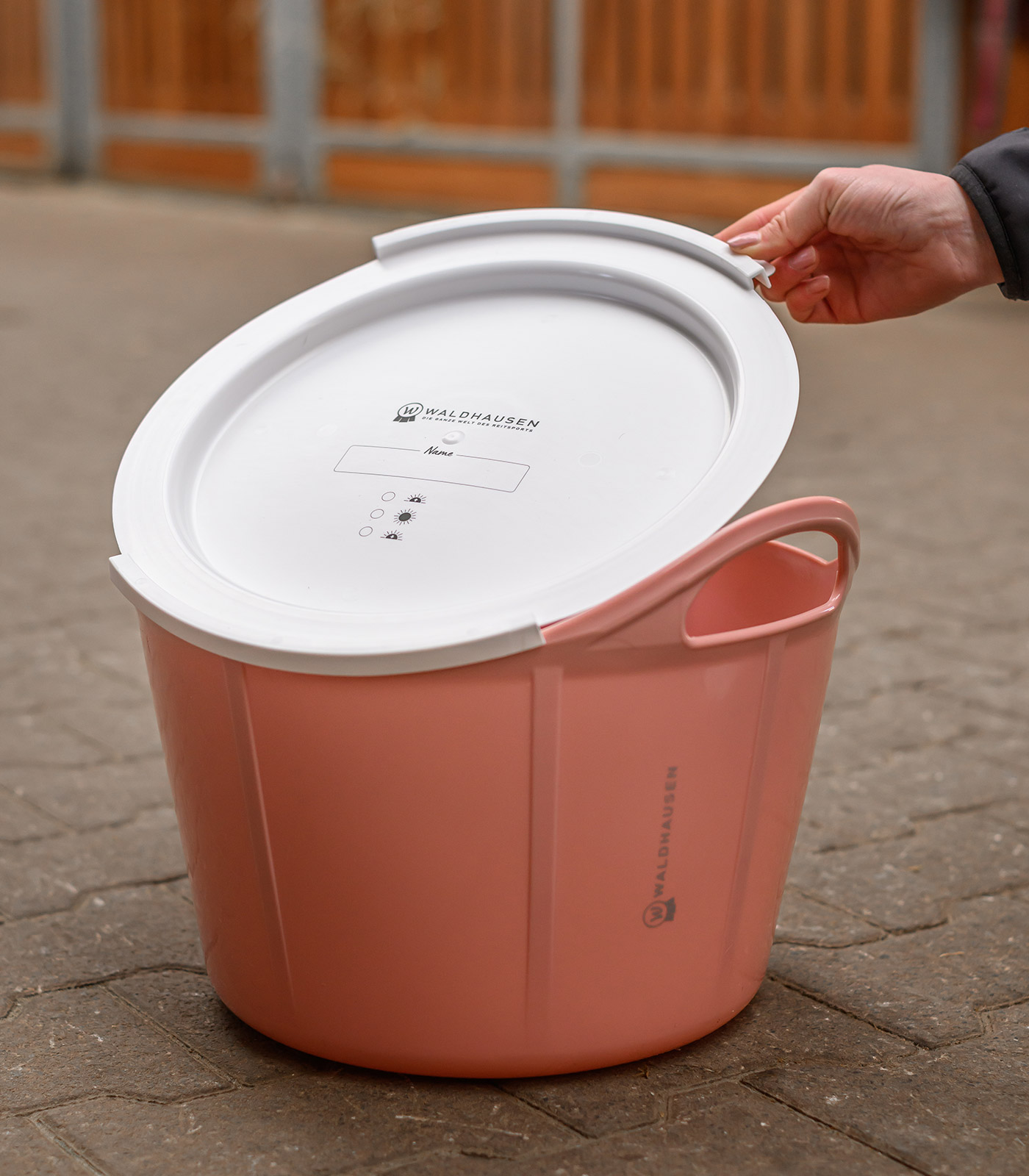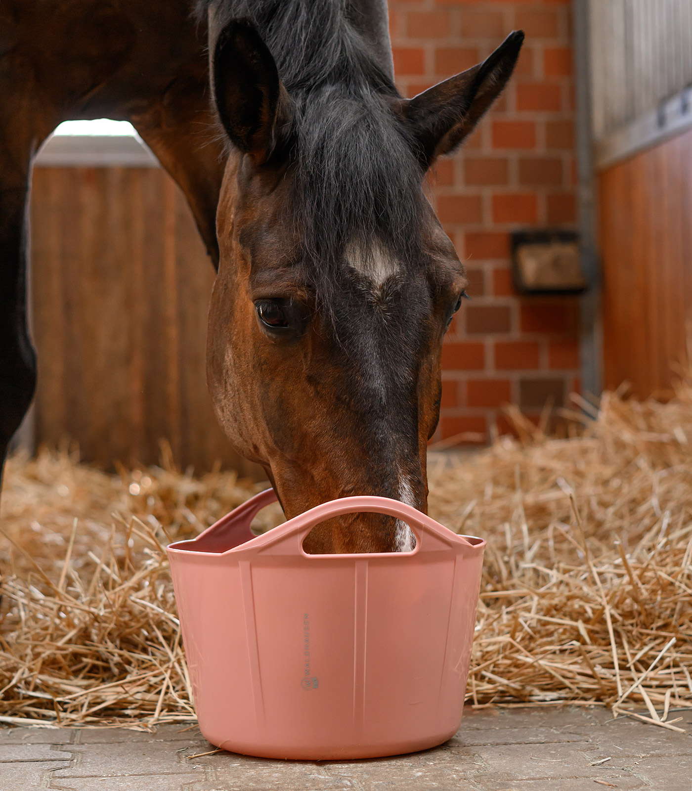 Récipient solide en plastique très souple, pratique à l’écurie comme dans toute la maison. Équipé de 2 poignées permettant un maniement plus facile. S’emploie comme seau pour le transport, la nourriture ou l’eau.