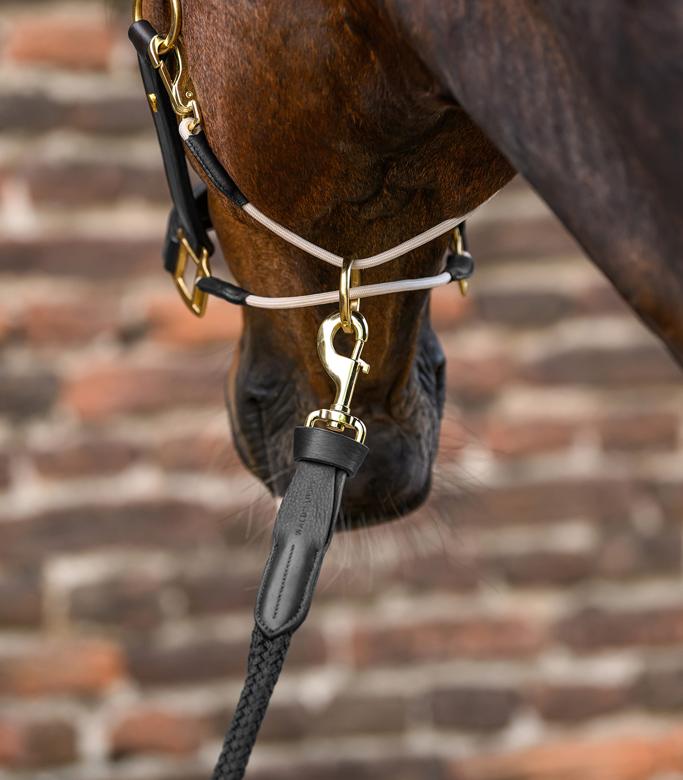 Hochwertiger Führstrick mit goldfarbenen Beschlägen und Lederapplikationen