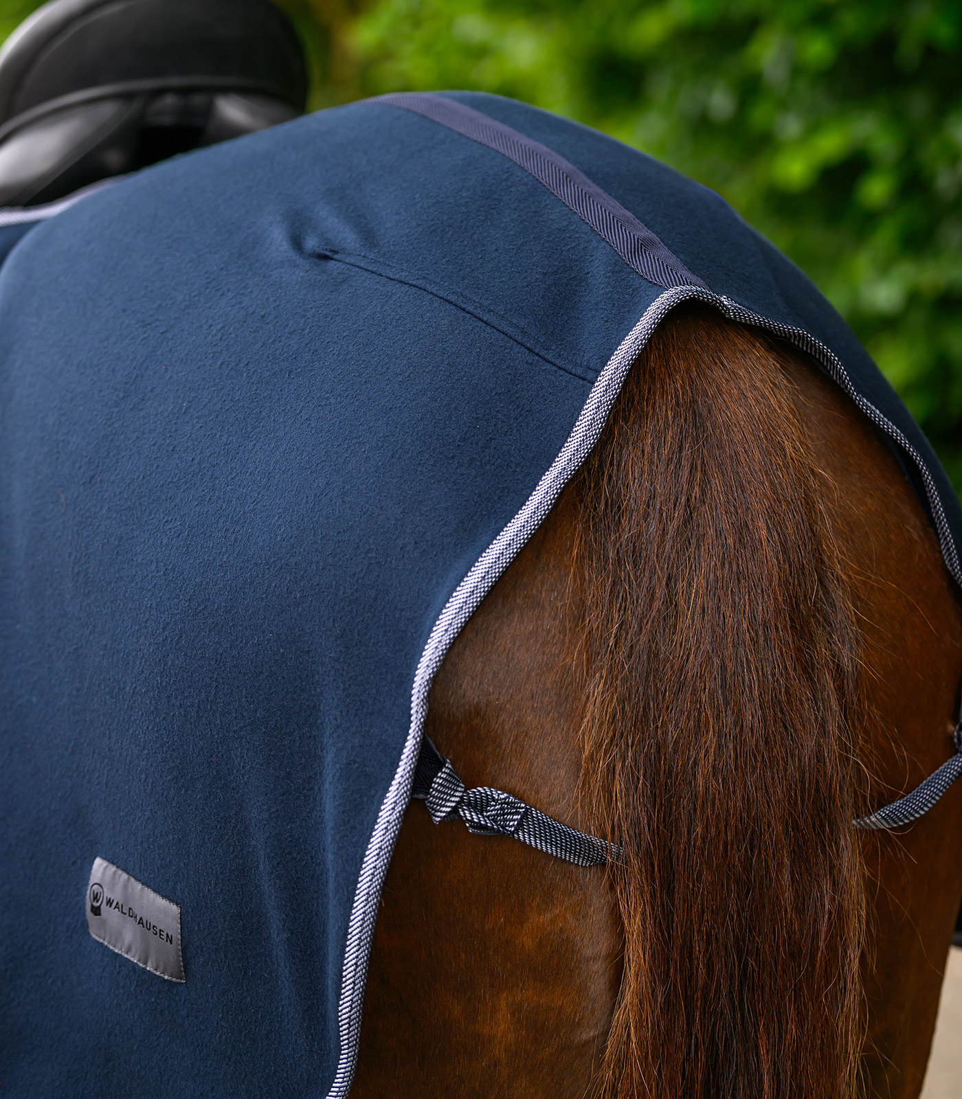 Questa classica coperta da passeggio combina un design accattivante alla funzionalità. Si fissa al garrese con una pratica chiusura a strappo e il cordino posteriore assicura una vestibilità ottimale.