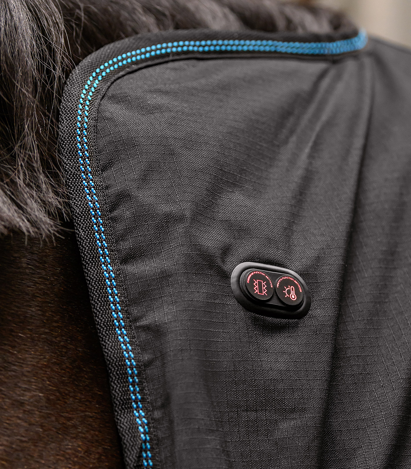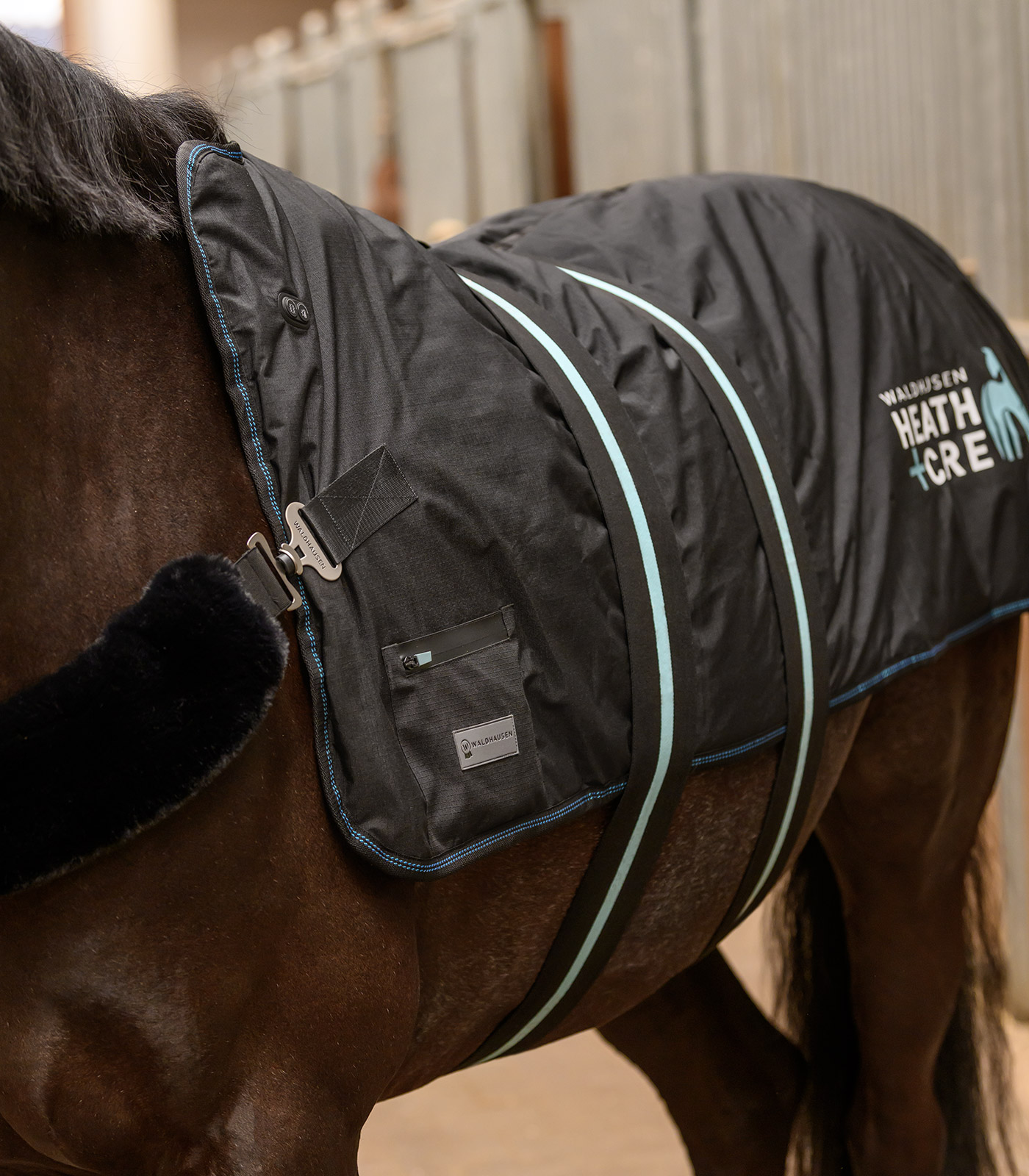 Benessere a portata di mano. La coperta riscaldante e massaggiante Waldhausen Health + Care TecSupreme rilassa in modo specifico i muscoli tesi, favorisce la circolazione sanguigna e supporta il recupero. Ogni lato della coperta ha un proprio sistema di riscaldamento e sette unità di massaggio integrate. Entrambi i lati possono essere controllati singolarmente e indipendentemente l’uno dall’altro, per un’applicazione veloce, efficace e semplice. Prima e dopo l’allenamento o semplicemente per regalare una coccola: il cavallo trae beneficio dal calore e dal massaggio proprio come se fosse in una spa.