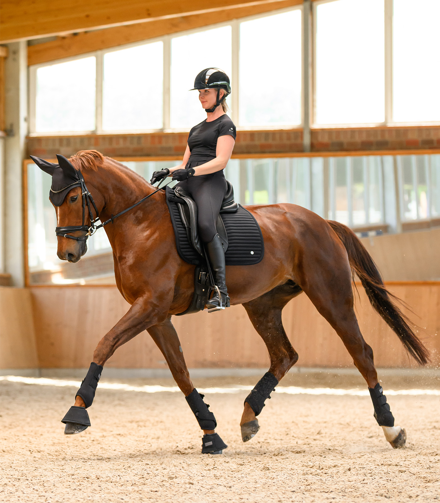 La cuffietta antimosche Performance combina una protezione funzionale dagli insetti a un look sportivo e dinamico. Il materiale softshell ultraleggero e traforato favorisce la circolazione dell"aria e impedisce l"accumulo di calore, anche in caso di uso prolungato. Inoltre, non si sforma e si asciuga rapidamente. Le orecchie elasticizzate assicurano una vestibilità anatomicamente corretta e rimangono saldamente in posizione anche durante i movimenti. Il taglio leggermente più lungo nella zona del collo migliora la tenuta sotto la briglia e riduce lo scivolamento. Il design sottolinea il carattere sportivo.