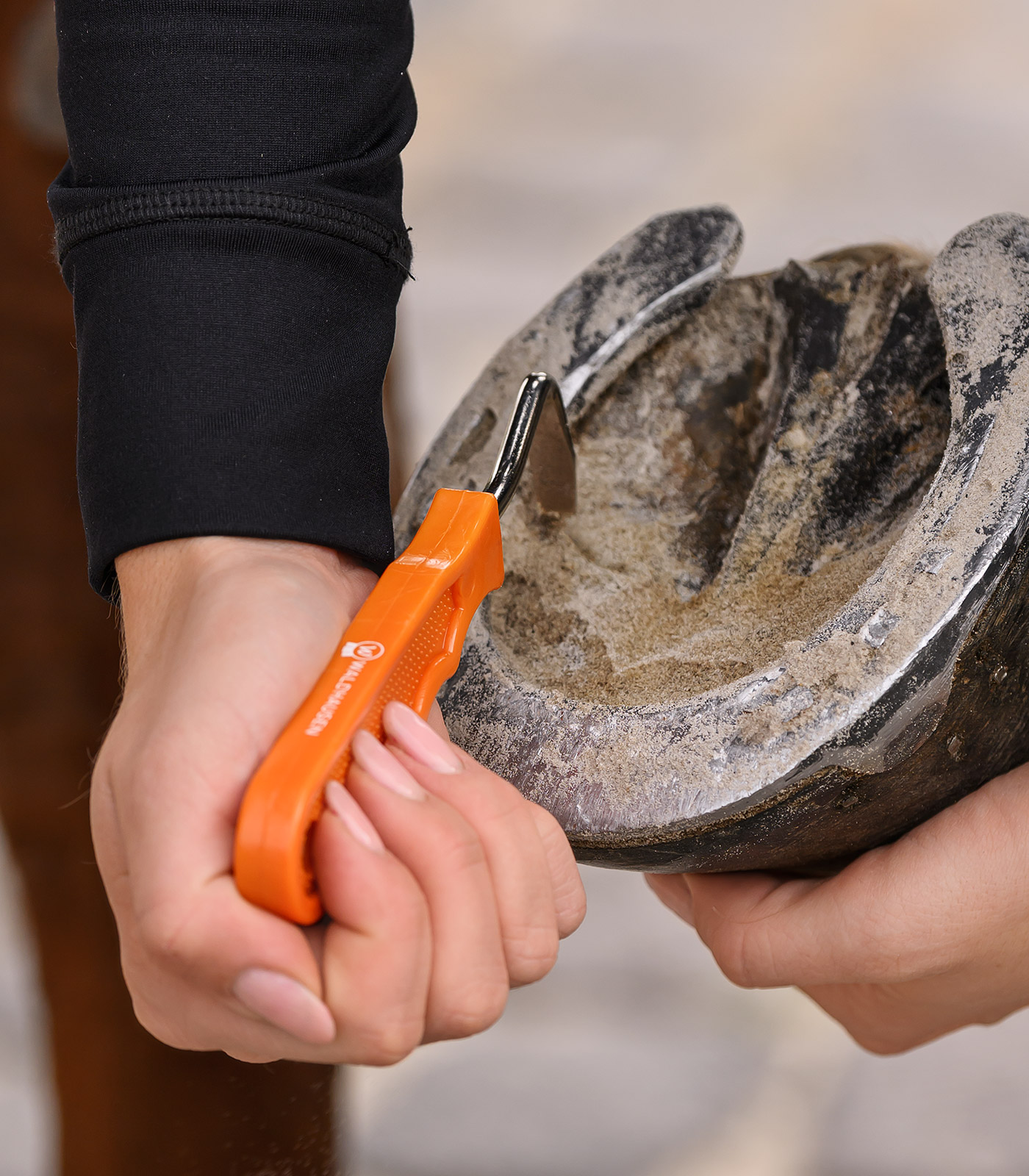 Questa pratica curasnetta firmata Waldhausen consente una pulizia accurata degli zoccoli, senza bisogno di una spazzola. La robusta impugnatura in plastica si adatta comodamente alla mano, rendendo lo strumento particolarmente resistente e facile da pulire. Un aiuto affidabile per la cura quotidiana degli zoccoli dei cavalli.