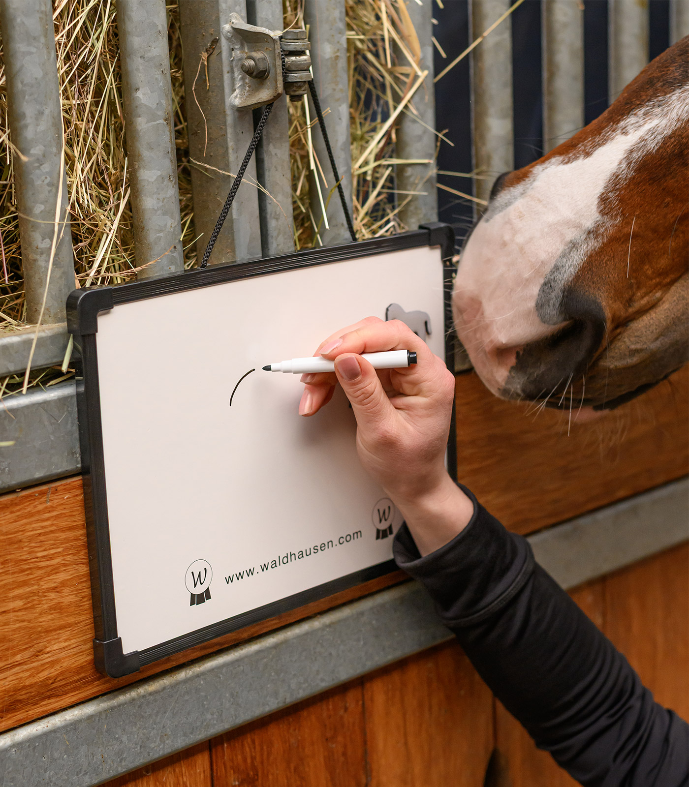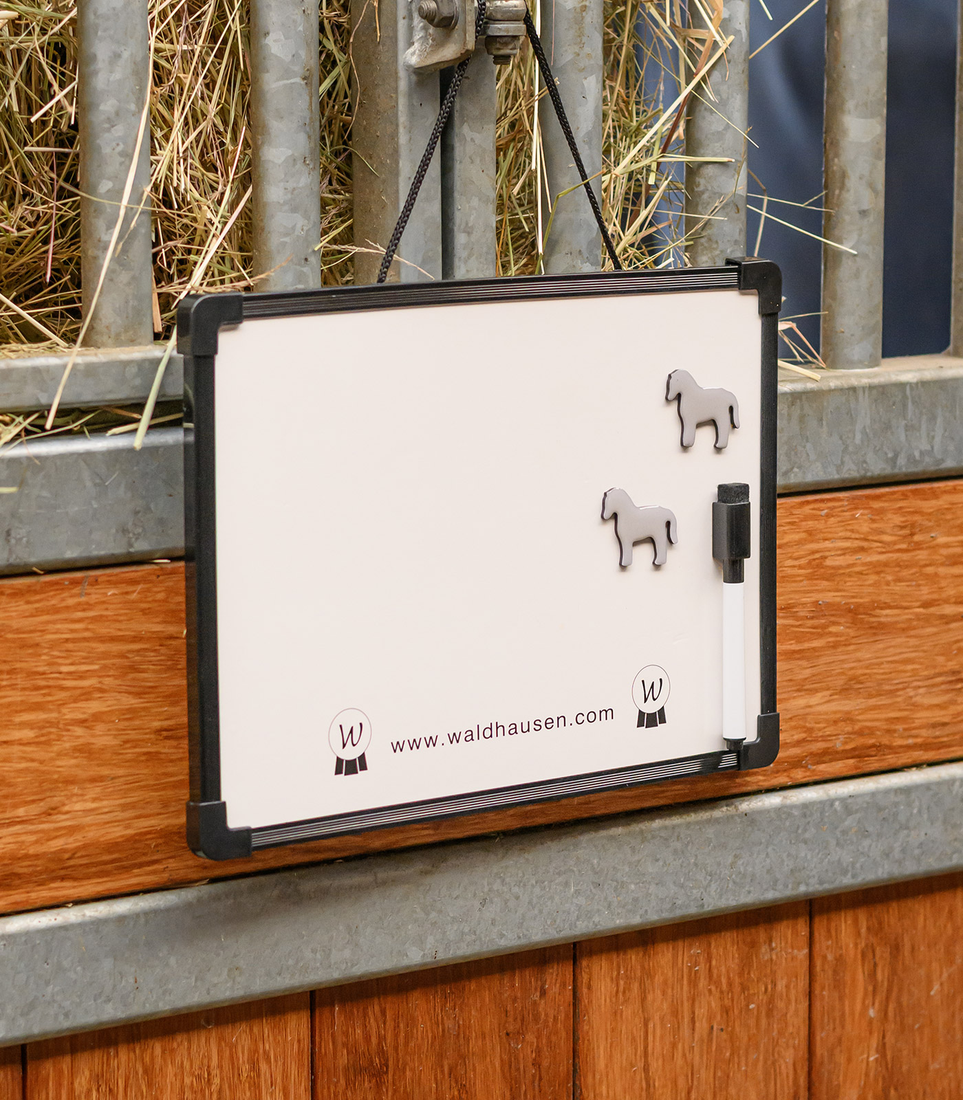 Per appendere bigliettini, con pennarello e due magneti a forma di cavallo.