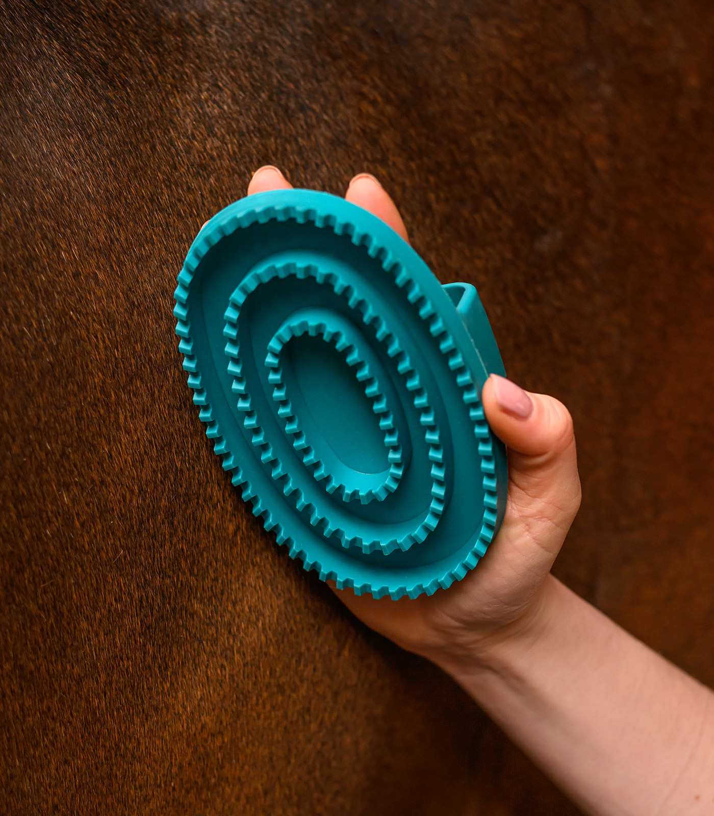 La striglia Rainbow conquista per la sua superficie stabile che rimuove in modo affidabile sporco, polvere e peli caduti dal manto. Il design colorato nei colori petrolio, rosa e giallo porta il buon umore anche nella borsa degli attrezzi.